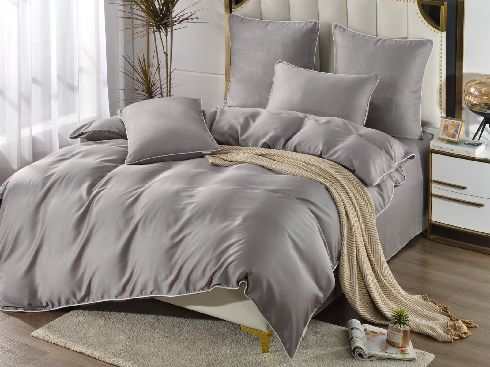Тенсел – это натуральная ткань из эвкалиптового волокна. На ощупь тенсел напоминает шелк – он такой же легкий и гладкий. Постельное бельё из такой ткани обладает хорошей терморегуляцией, поэтому его можно использовать в любое время года – не будет жарко или холодно. На данный момент, тенсел пользуется большой популярностью во всем мире.
