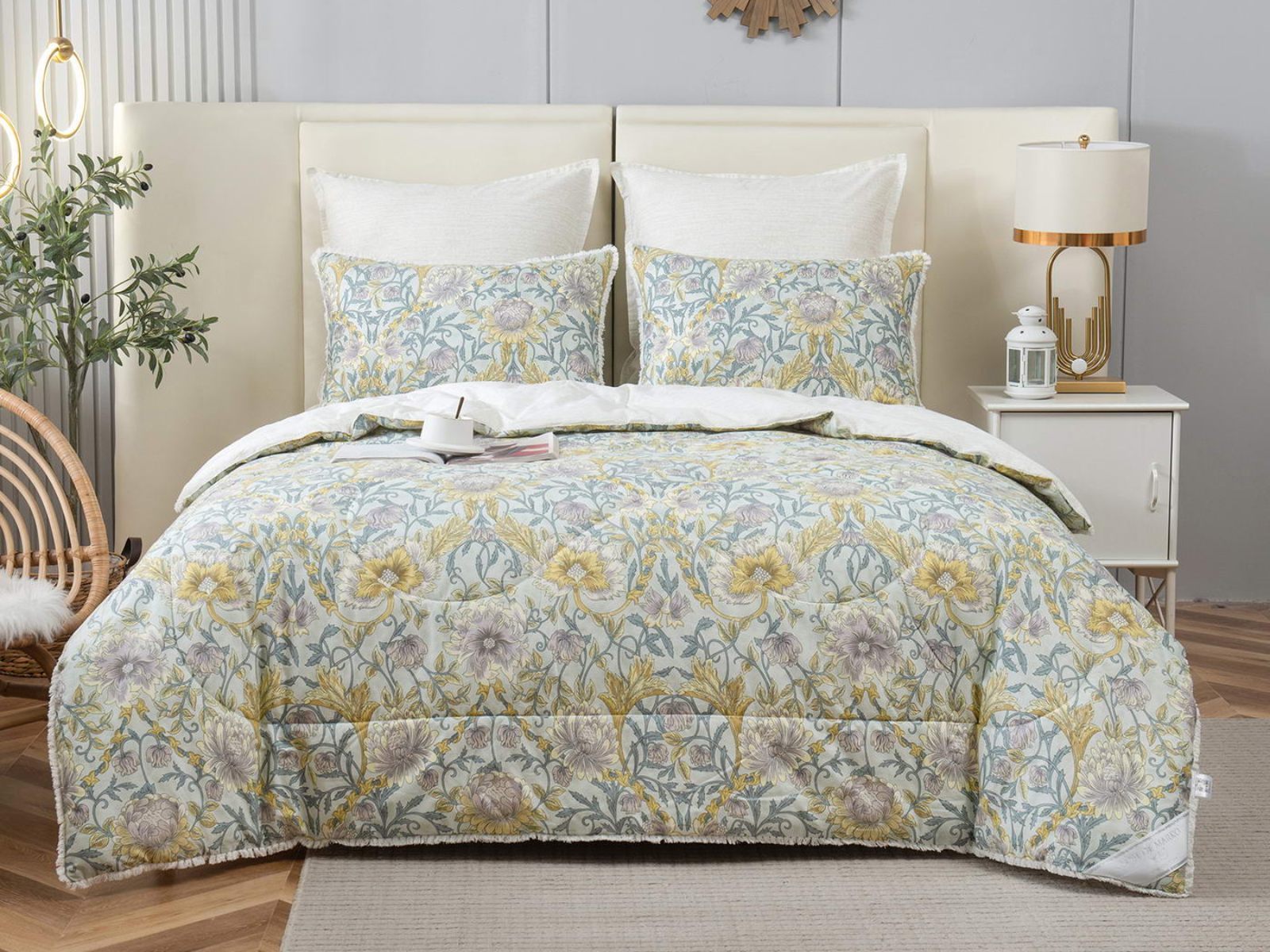 В комплекты комфортеров с одеялом Бернадетт входят наволочки, простыня и легкое всесезонное одеяло. Оцените это современное и очень удобное решение, которое идеально подходит тем, кто не любит возиться с пододеяльниками.