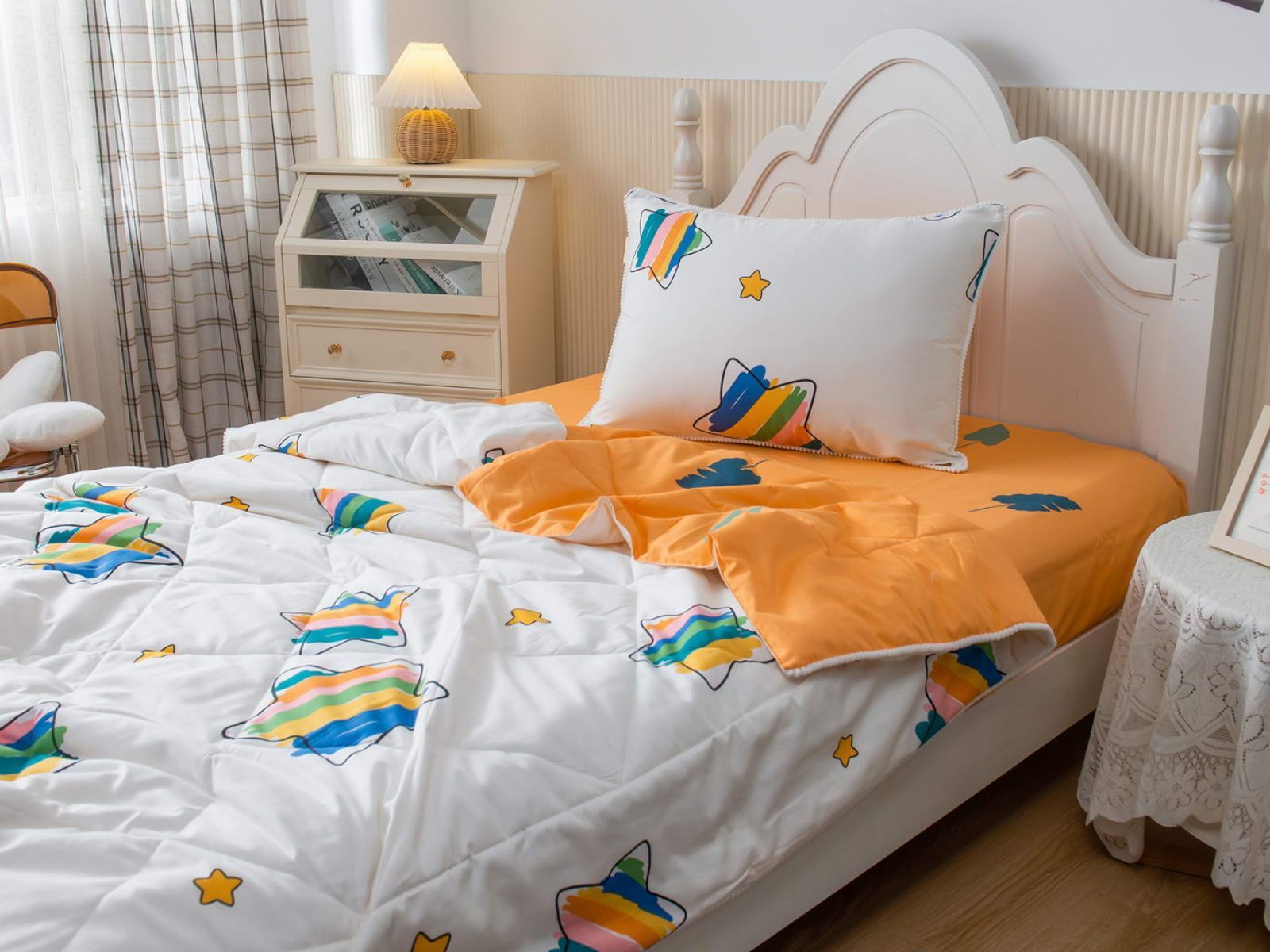 Само одеяло тонкое и легкое, но под ним ребенку не будет холодно зимой или жарко летом. Такое одеяло можно использовать в любое время года, 100% хлопок гарантирует качественный сон, т.к. натуральная ткань хорошо впитывает влагу и позволяет коже дышать. Натуральные материалы не вызывают аллергии. Огромная палитра оттенков и яркие дизайны комплектов понравятся детям и подросткам.