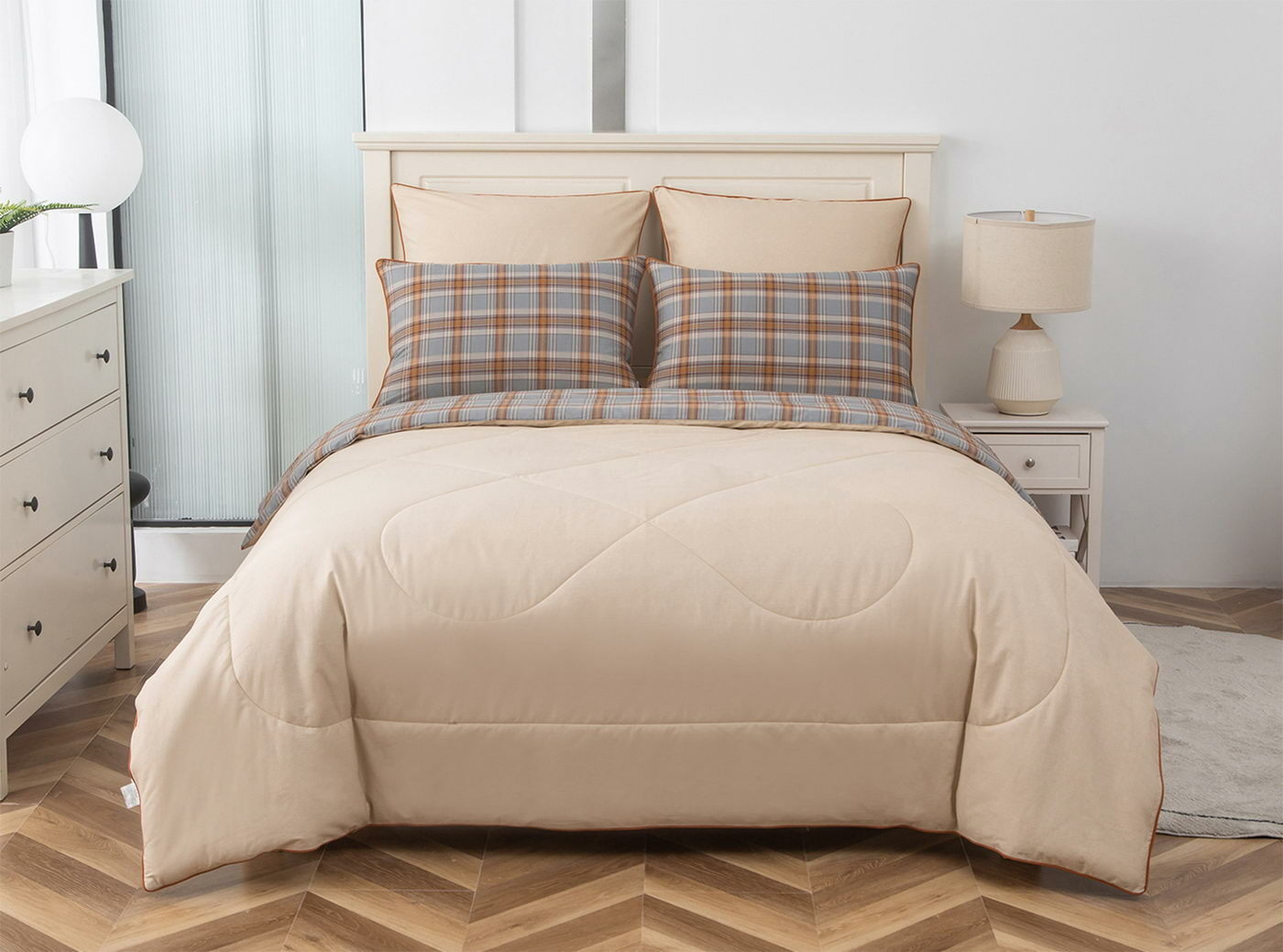 Особенность: двусторонняя модель, наволочки и одеяла декорированы кантом.