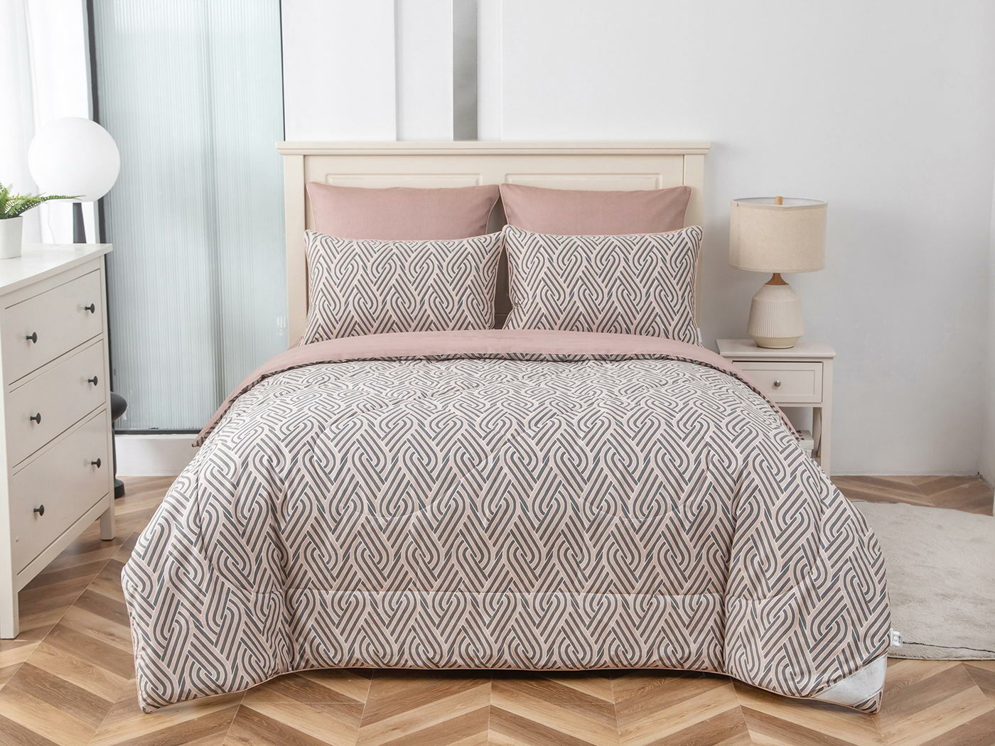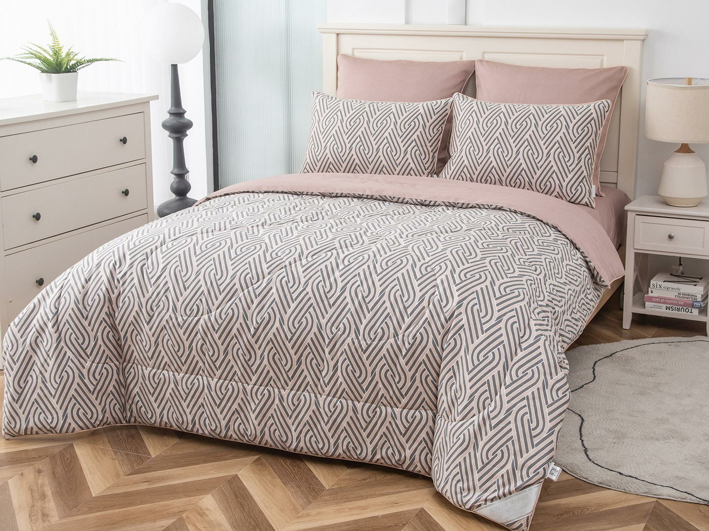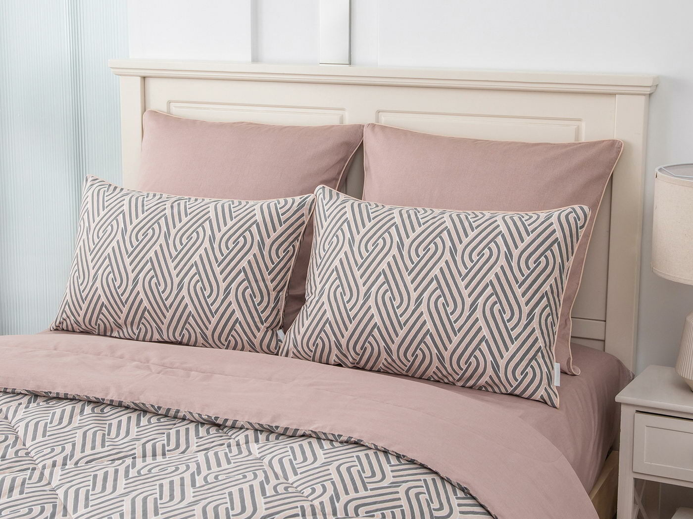 Особенность: двусторонняя модель, наволочки и одеяла декорированы кантом.