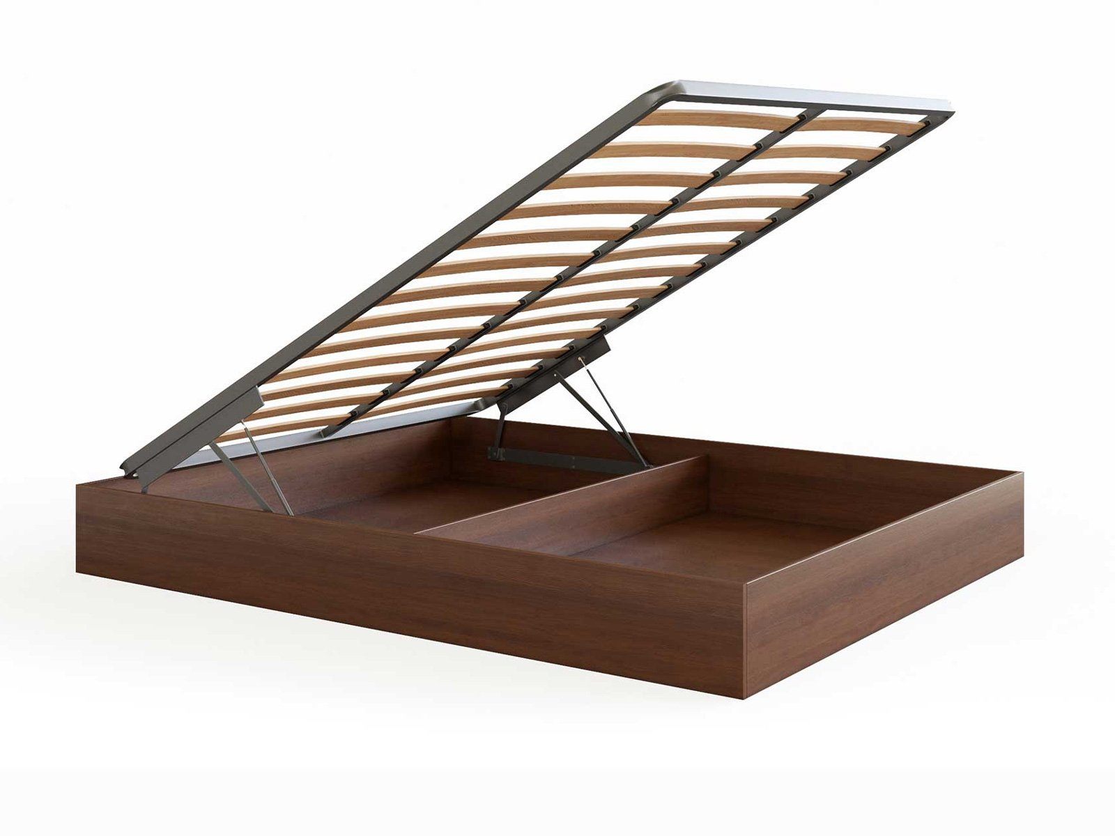 Кровать Куб представляет собой металлическое основание с ламелями из березового шпона и ящик для белья, которые соединены специальным механизмом подъема, который рассчитан под вес матраса. Стандартно предусмотрено основание Dream. Требуется сборка.