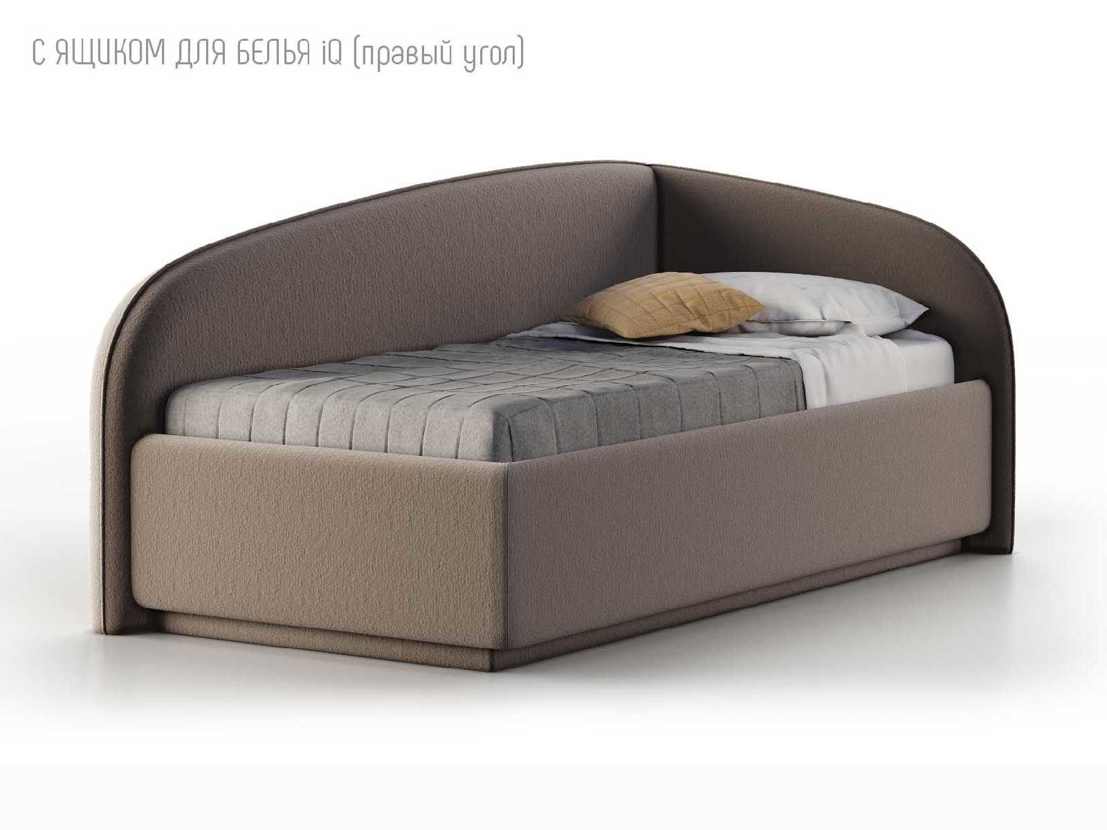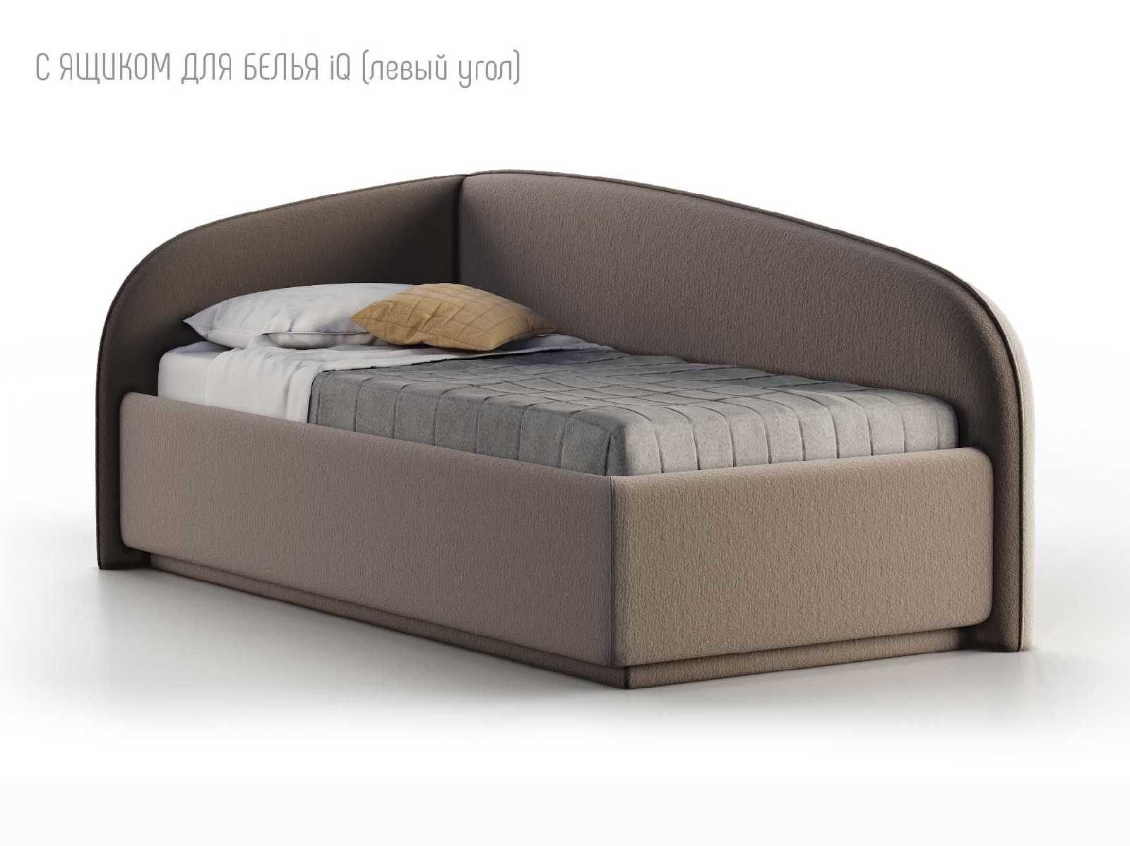 Кровать укомплектована IQ с подъемным механизмом и ящиком для белья без дна (дополнительная платная опция - дно к ящику IQ из HDF (ХДФ). Каркас кровати на цоколе, декоративный чехол на цоколе съёмный. Глубина ящика для белья - 30 см, без ограничения нагрузки на ящик.
