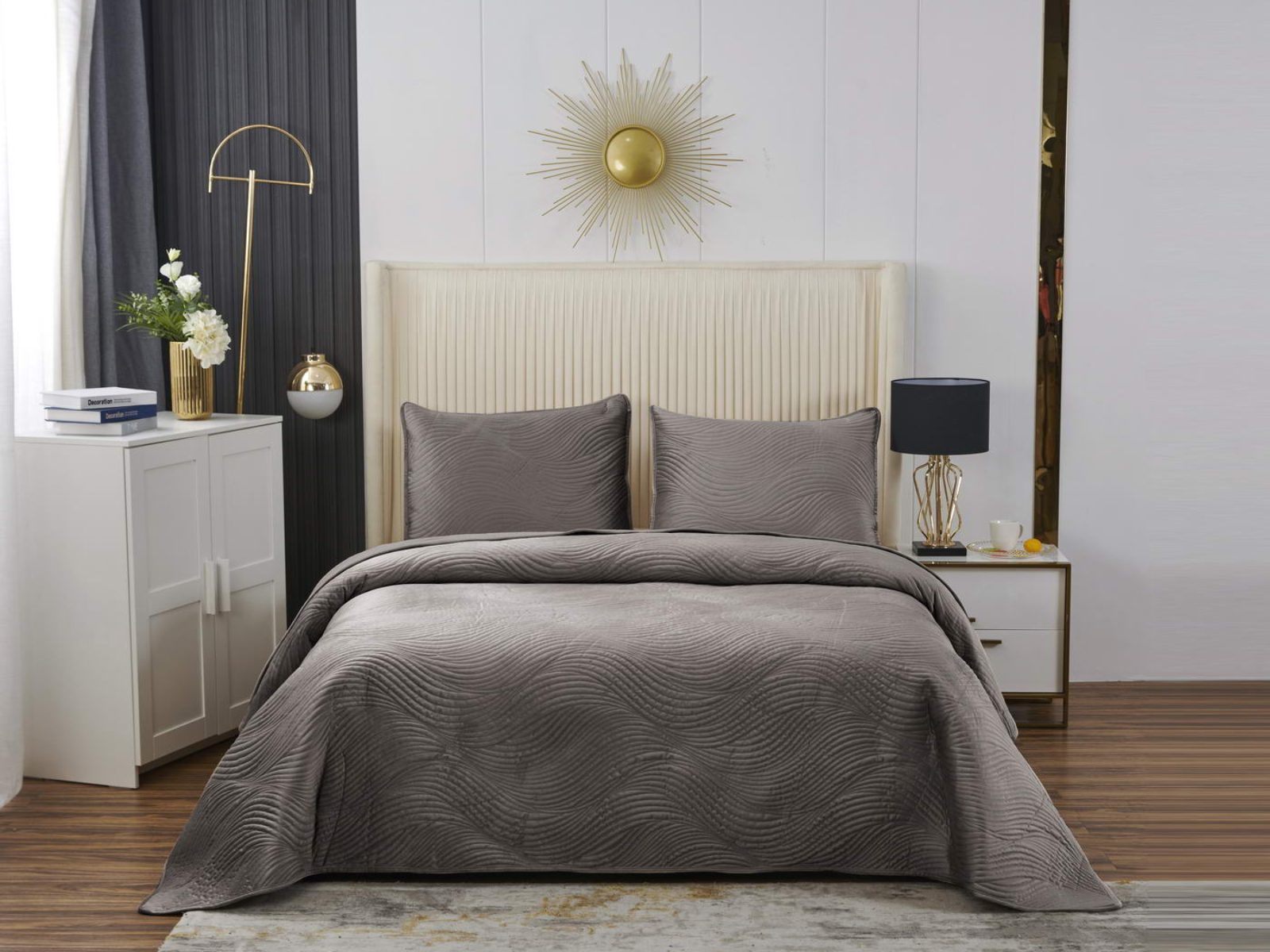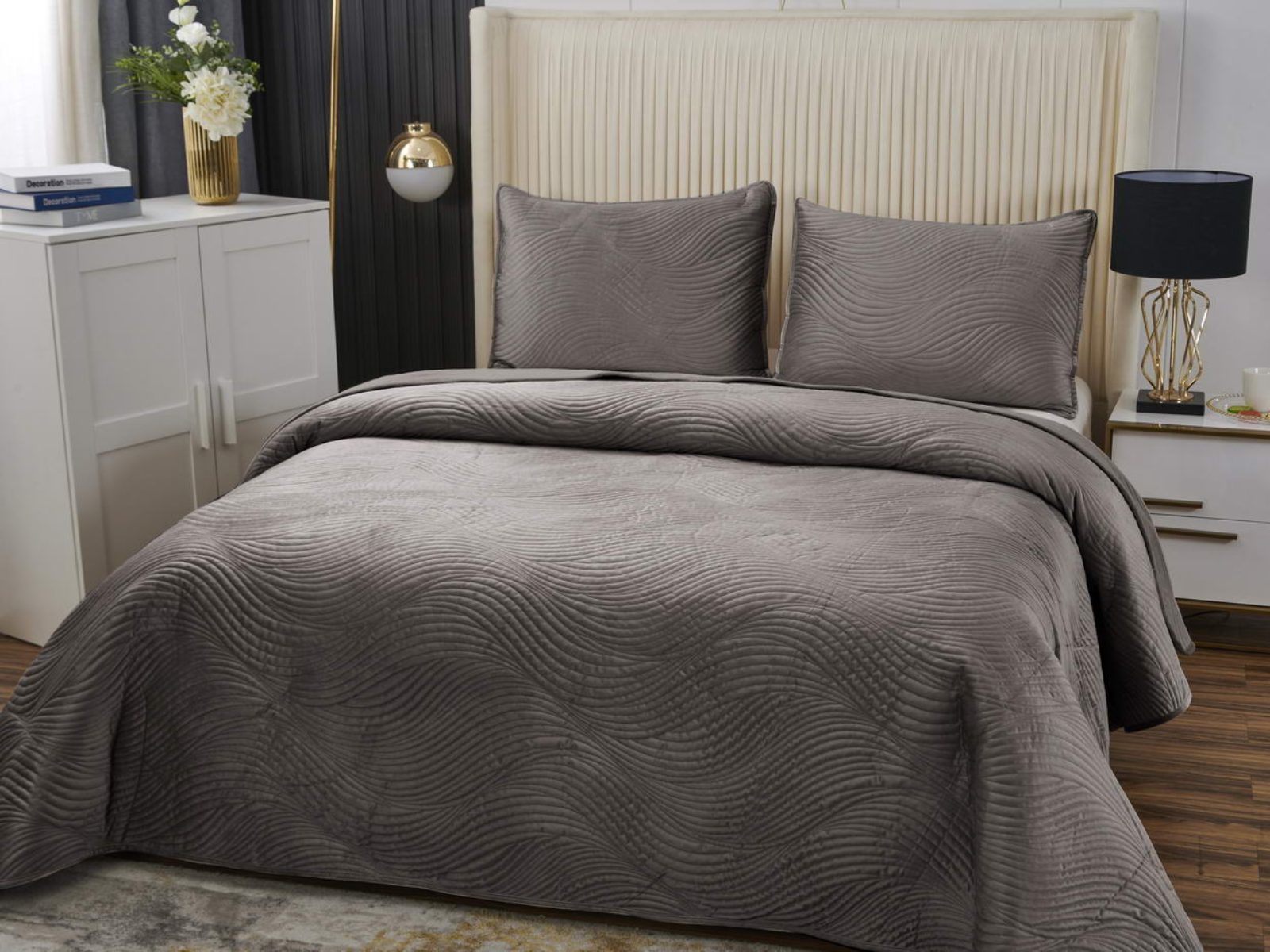 Традиционно в японском саду камней линии на песке символизируют отсутствие хаоса и спокойствие. Такой плавный узор напоминает размеренные потоки воды, которые оказывают на психику благоприятный эффект. Изящное покрывало Жизель с рисунком в виде подобных линий поможет обрести умиротворение, ведь в современном мире так важно уметь привести мысли в порядок. Помимо положительного воздействия на нервную систему, рисунок в виде волны придаст изысканности и утонченности Вашему интерьеру.
