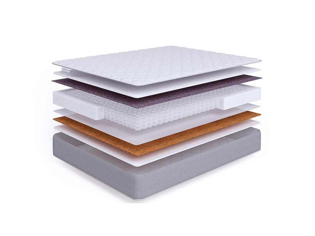 Натуральная кокосовая койра состоит из кокосовых волокон, пропитанных латексом. Она придает матрасу жесткость и упругость. Кокосовая койра также имеет превосходные ортопедические и эксплуатационные свойства.