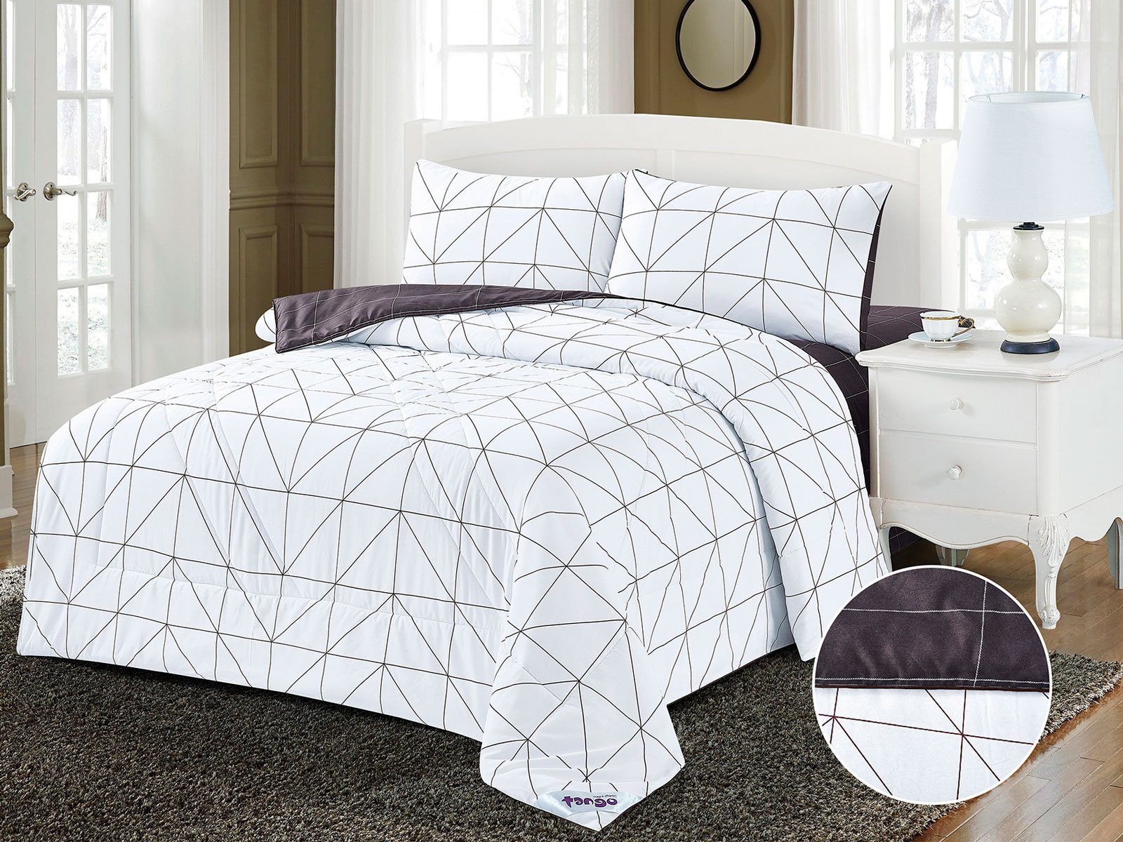 В данный комплект вместо пододеяльника входит облегченное одеяло. Комплект подойдет тем, кто устал от мучительного натягивания пододеяльников на одеяло.